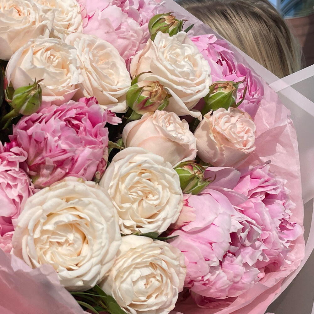 pivoines - 7 pce rose spray - 6 pce emballage - 4 pce