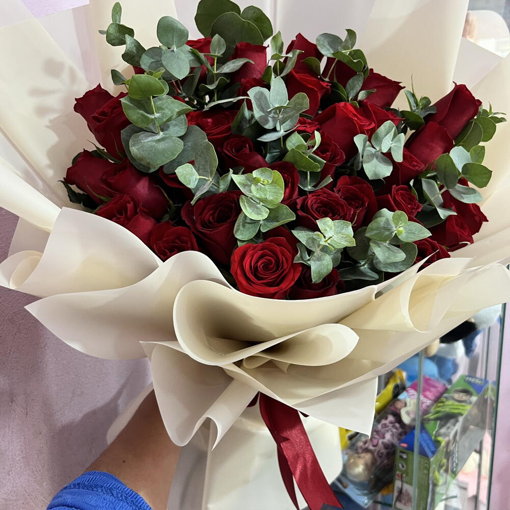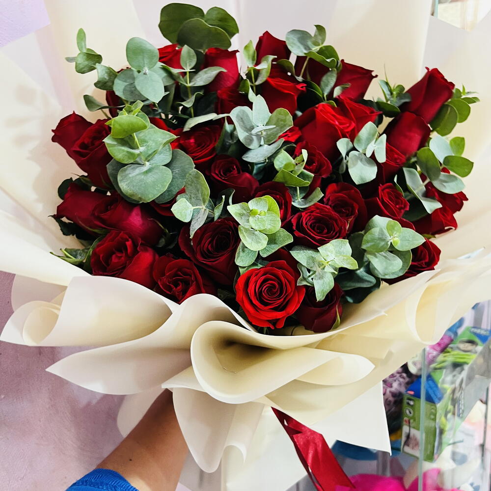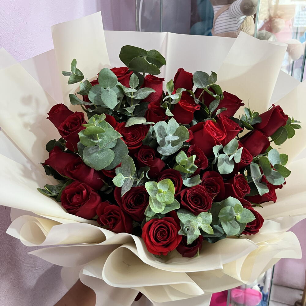 rosas - 30 pce dólar eucalipto - 30 pce