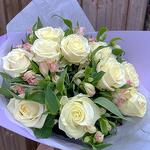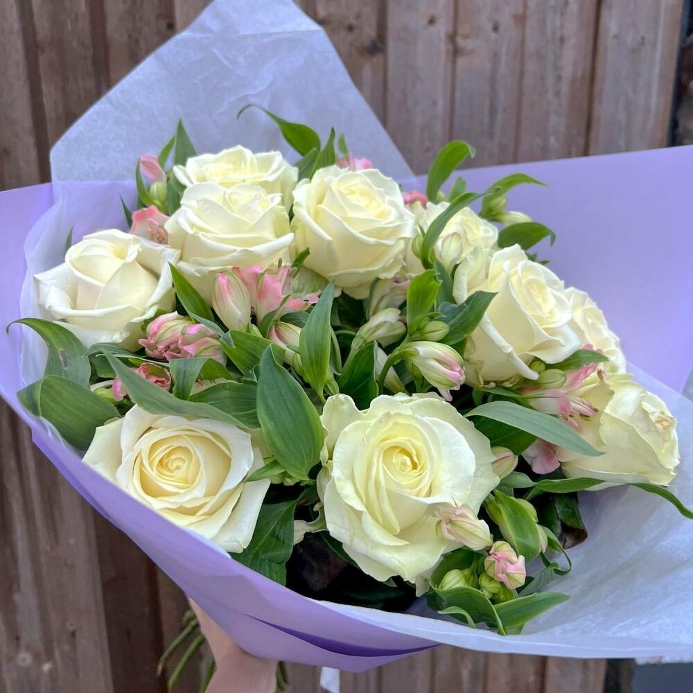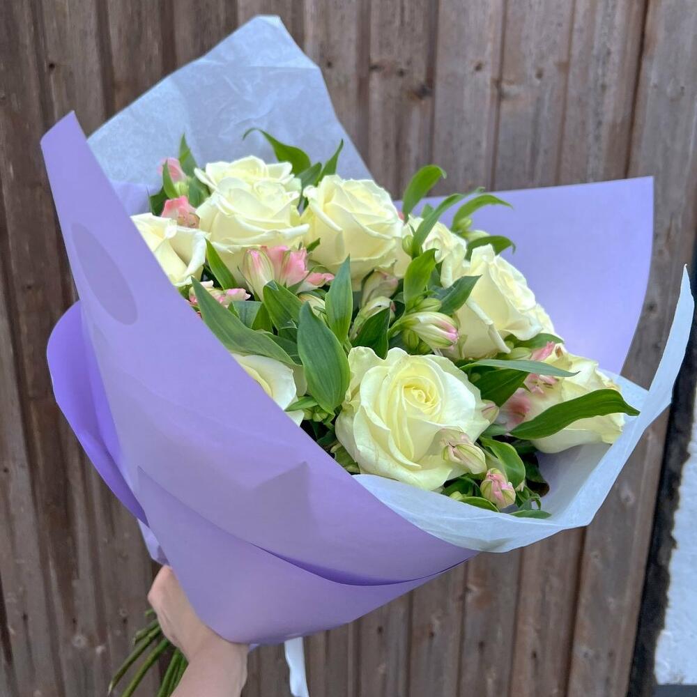 Blumenstrauß Sommernebel Tauchen Sie ein in die zarte Eleganz unseres Blumenbouquets, der die klassische Schönheit weißer Rosen mit der verspielten Raffinesse von rosa Alstroemerien vereint. Die reinweißen Rosen, sorgfältig ausgewählt, strahlen zeitlose Eleganz aus. Jede Blüte erzählt eine Geschichte von Reinheit und Unschuld, und ihr Duft verleiht dem Raum eine betörende Frische. Die rosa Alstroemerien fügen dem Strauß eine verspielte Note hinzu. Mit ihren sanften, aber lebendigen Farben symbolisieren sie Zuneigung und Freundschaft. Die zarten Blütenblätter öffnen sich wie kleine Kunstwerke und verleihen dem Strauß eine fröhliche Leichtigkeit. Zusammen schaffen die weißen Rosen und rosa Alstroemerien ein harmonisches Zusammenspiel von Eleganz und Frische. Dieser Strauß ist nicht nur eine visuelle Freude, sondern auch eine duftende Ode an die Schönheit der Natur. Perfekt für Anlässe, die Zartheit und Freude feiern, ist dieser Blumenstrauß eine liebevolle Geste, um Wertschätzung, Liebe oder Glückwünsche auszudrücken. Genießen Sie die Schönheit und die subtile Botschaft dieses besonderen Blumenarrangements! Dem Blumenstrauß legen wir eine Anleitung zur Pflege und ein Mittel zur Verlängerung der Lebensdauer der Blumen bei. Jetzt ganz bequem bestellen und Ihre Blumen an Ihre Wunschadresse liefern lassen. ширина, см: 31 высота, см: 61 длина, см: 31