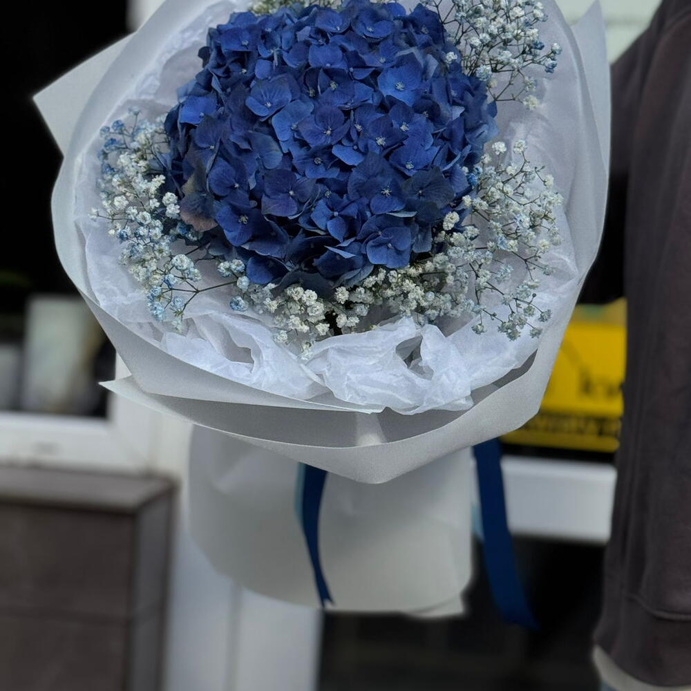 Bouquet d'hortensias et de gypsophile