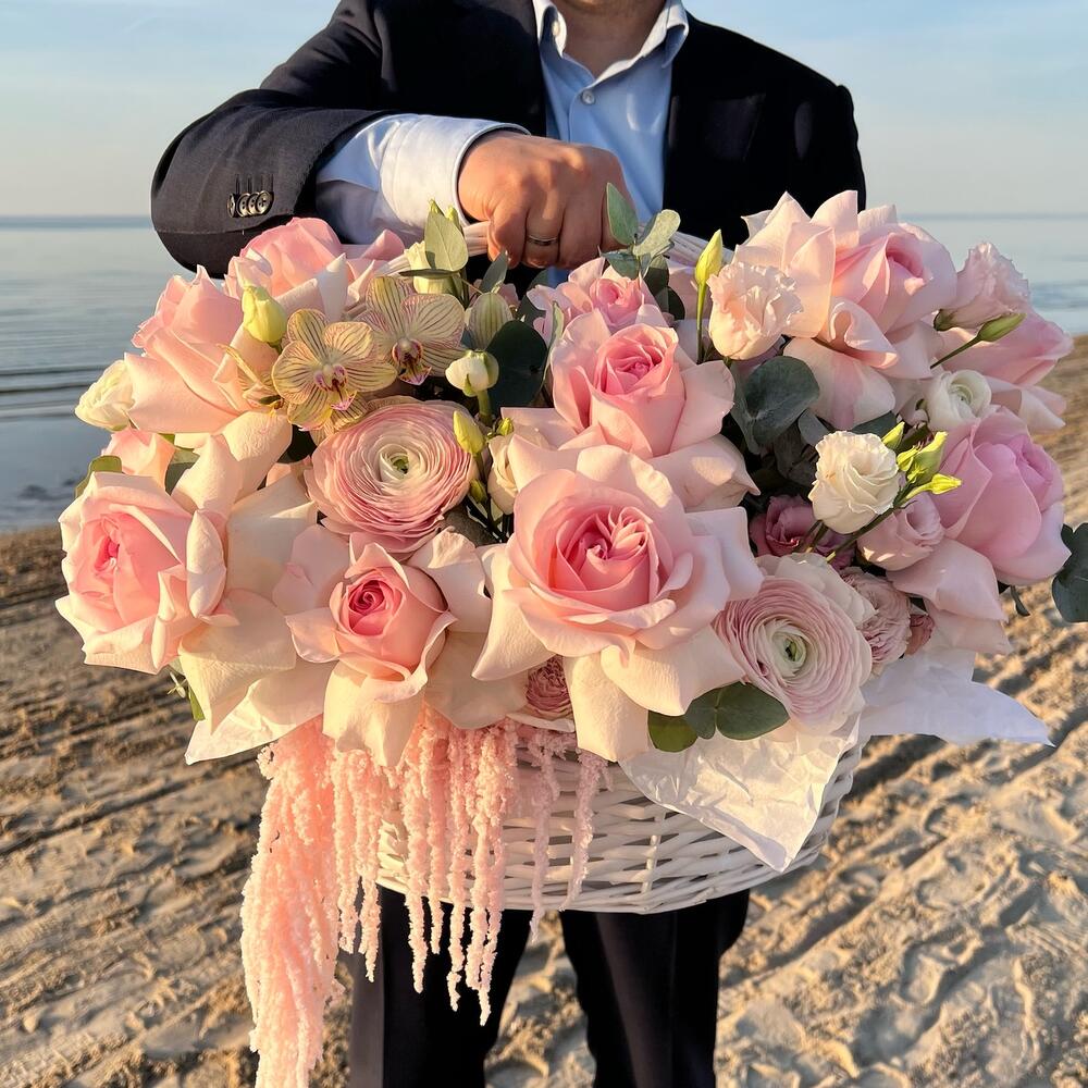Композицию доставили в обозначенное воемя. Спасибо. Немного расстроило несоответствие тому, что представлено было на фото магазина. В составе не увидела заявленных матиолы и астильбы, на мой взгляд, в целом композиция выглядела не совсем, как на фото в Приложении. Но, главное, виновнице торжества понравилось!