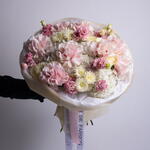 Букет красивый получился. Доставили немного позже назначенного времени, не критично для нас это было. Фото отчет сделали быстро. Доставка считаю дорогая, плюс большие розы не первой свежести были.
