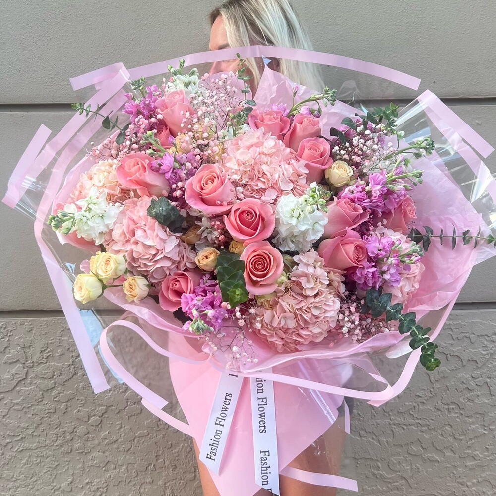 Gypsophile - 10 pce Hortensia - 5 pce Mattiola - 10 pce Rose - 15 pce