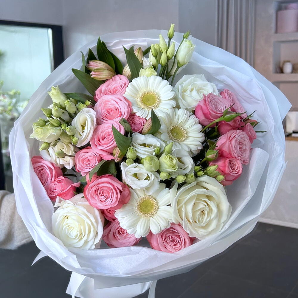 Eustoma - 2 pce Spray rose - 3 pce Alstroemeria - 2 pce Gerbera - 3 pce rose - 3 pce