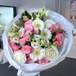 Ten bukiet kwiatów, składający się z 2 sztuk Eustomy, 3 sztuk róż Spray, 2 sztuk Alstroemerii, 3 sztuk Gerber i 3 sztuk róż jest doskonałym wyborem na każdą okazję. Solidna, pełna wyrazu kolorystyka sprawi, że każde miejsce zyska blasku. Doskonały wybór dla tych, którzy cenią sobie klasę i elegancję.