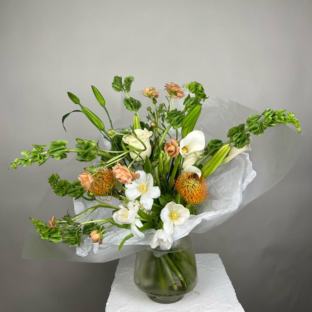 Tulips - 4 pce hortensia - 2 pce renoncule papillon - 5 pce cloches irlandaises - 5 pce coussins à épingles - 3 pce roses de jardin haut de gamme - 3 pce