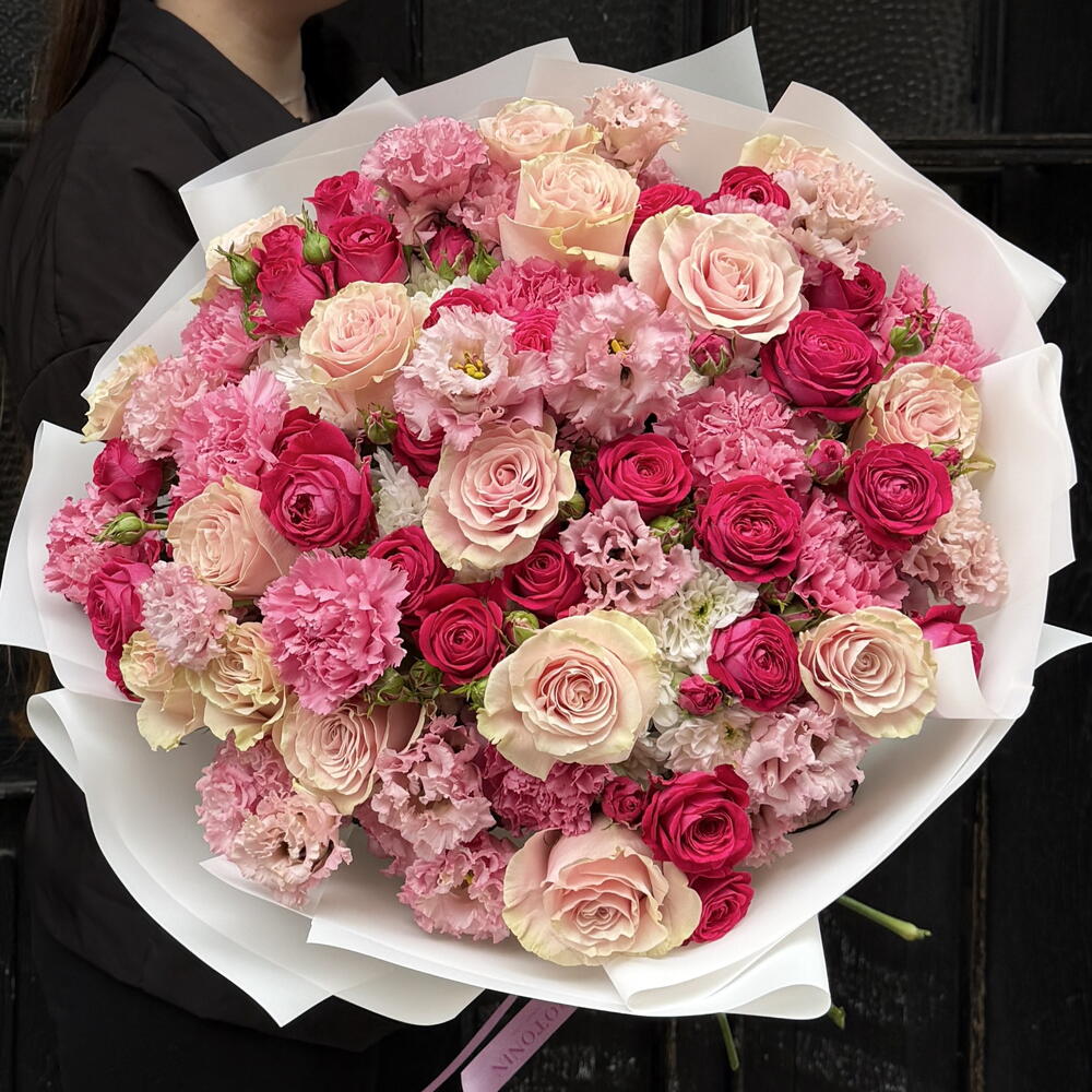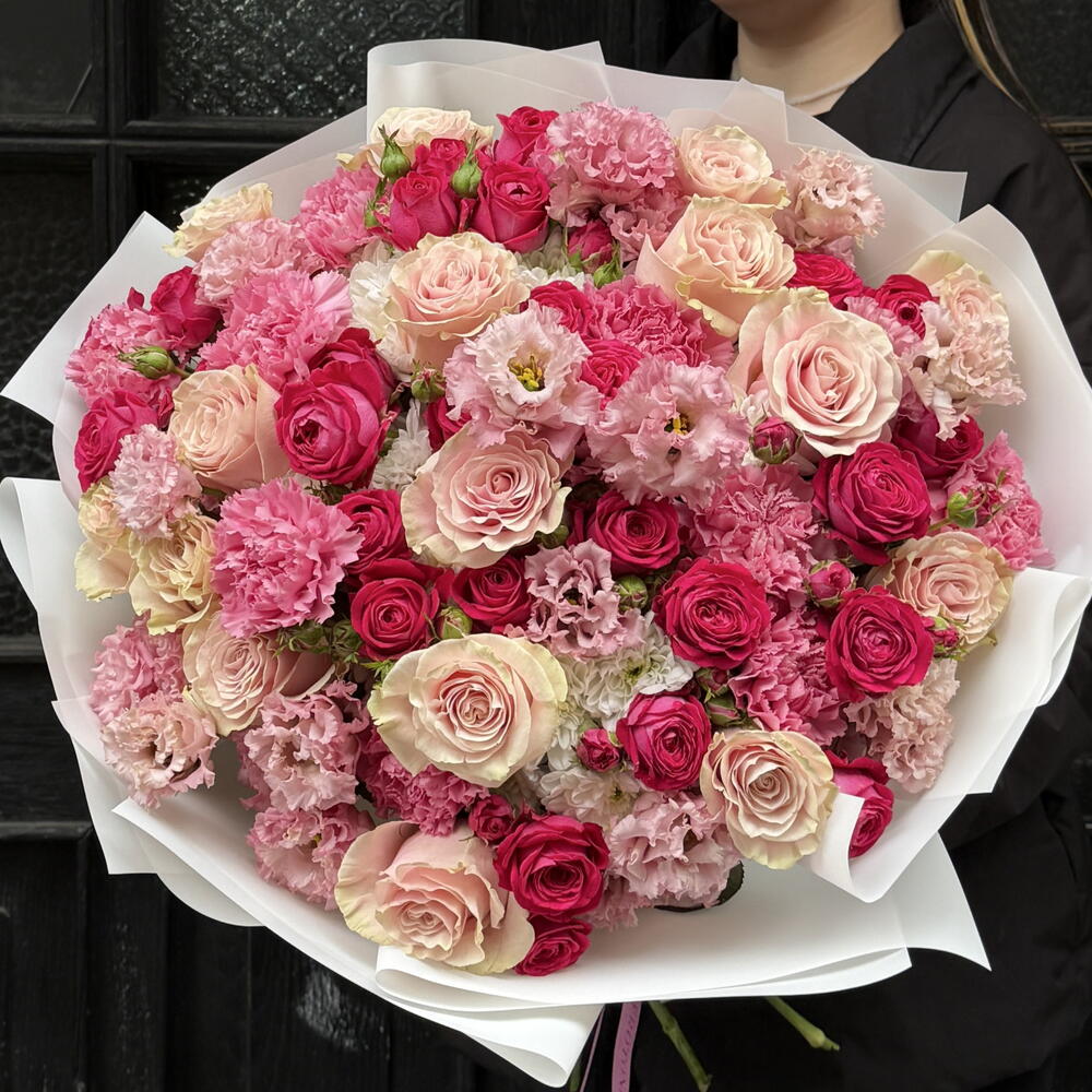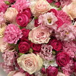 Eustoma - 9 pce Spray rose - 8 pce rose - 15 pce dianthus - 10 pce chrysanthème - 4 pce