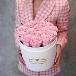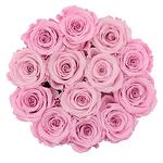 Les roses éternelles sont des fleurs vivantes qui conservent leur couleur et leur forme pendant au moins 2 ans. Vous pouvez être sûr que cet ensemble élégant éblouira nettement plus longtemps qu'un bouquet traditionnel. Si vous aimez les couleurs délicates et pastel, cet ensemble est fait pour vous. Il éblouit par sa délicatesse et confère un caractère exceptionnel à l'endroit où il se trouve. La couleur rose de la fleur signifie la sympathie, le dévouement, l'amitié. Nombre de roses : environ 13 Diamètre de la boîte : Ø 20 cm