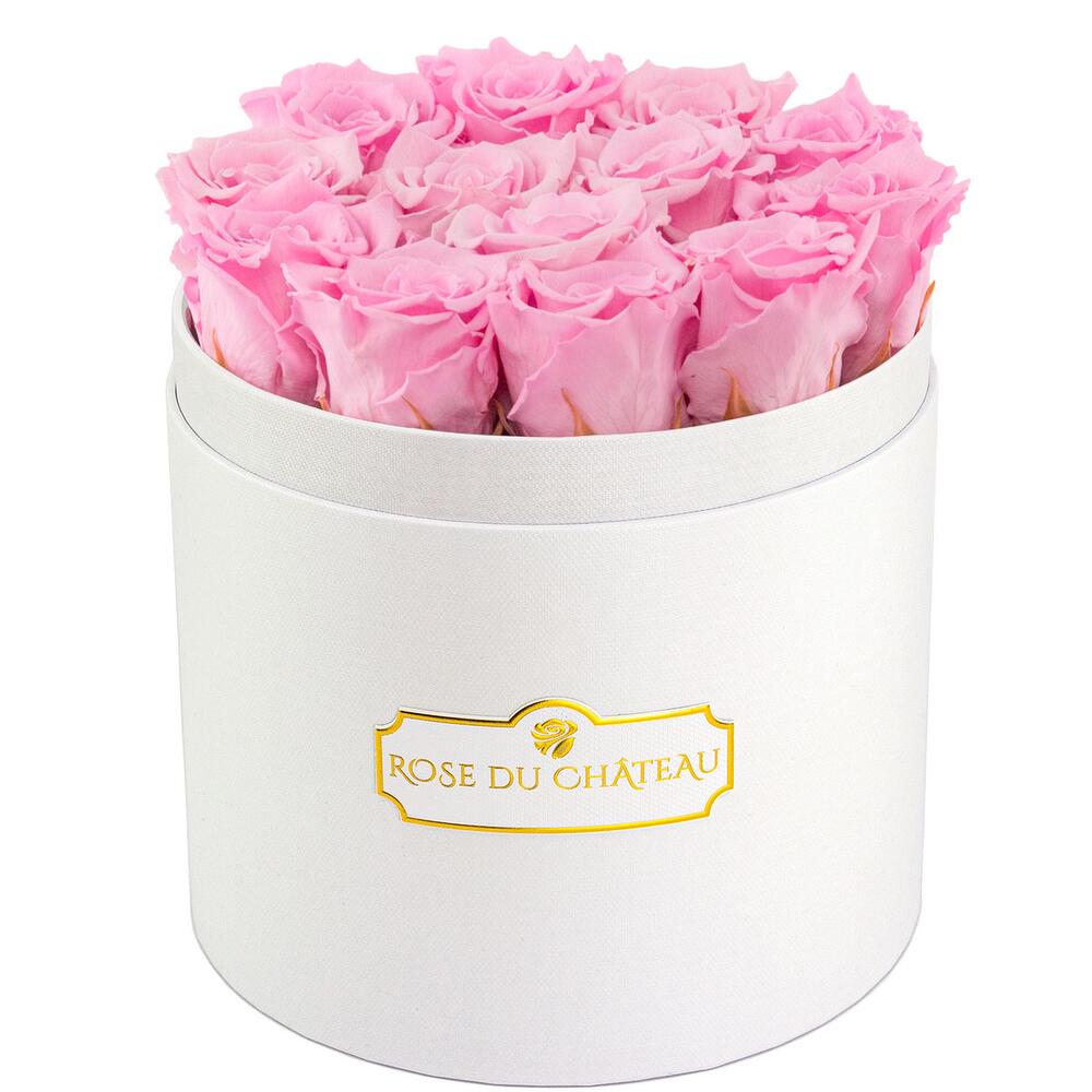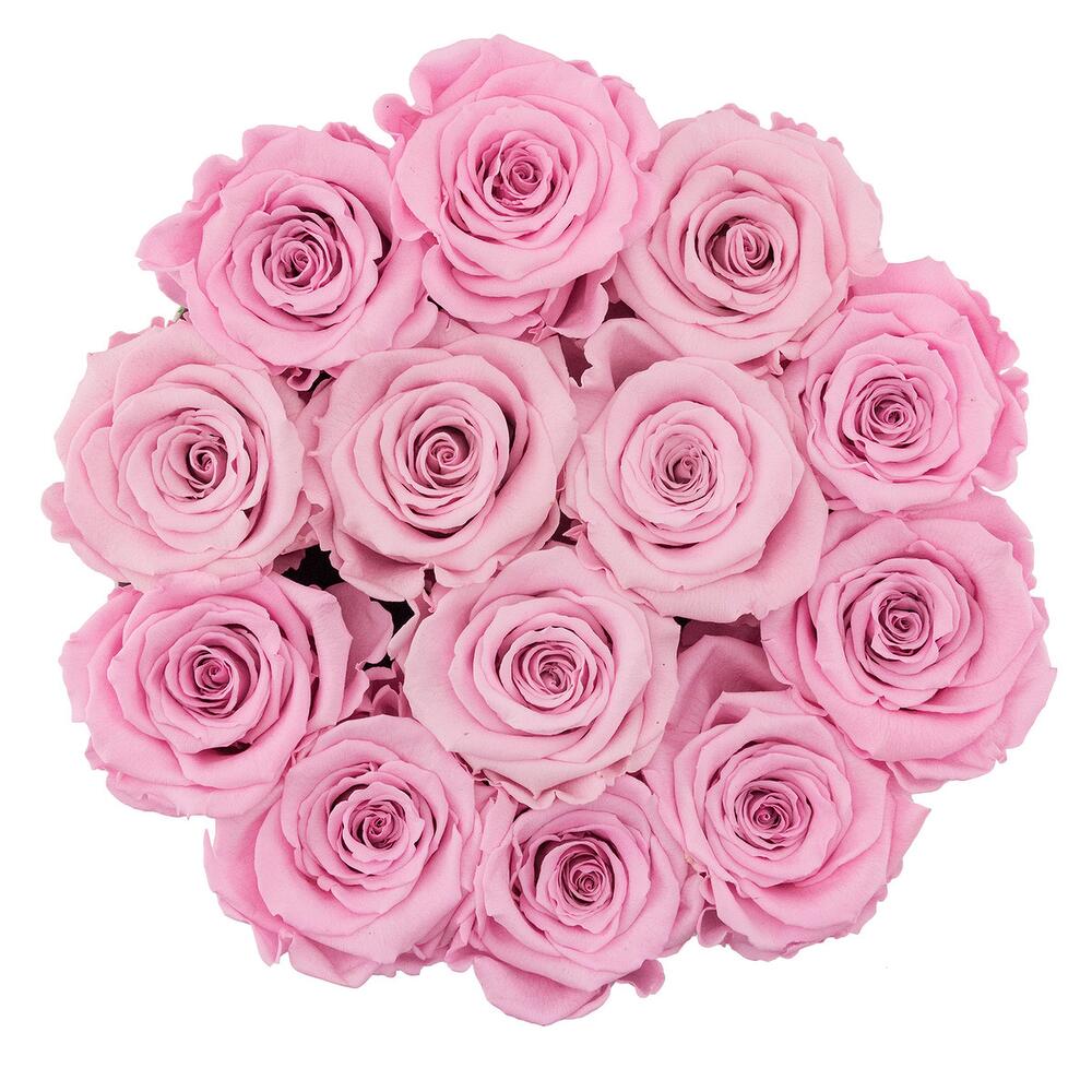 Les roses éternelles sont des fleurs vivantes qui conservent leur couleur et leur forme pendant au moins 2 ans. Vous pouvez être sûr que cet ensemble élégant éblouira nettement plus longtemps qu'un bouquet traditionnel. Si vous aimez les couleurs délicates et pastel, cet ensemble est fait pour vous. Il éblouit par sa délicatesse et confère un caractère exceptionnel à l'endroit où il se trouve. La couleur rose de la fleur signifie la sympathie, le dévouement, l'amitié. Nombre de roses : environ 13 Diamètre de la boîte : Ø 20 cm