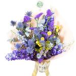 Eucalyptus - 3 pce Limonium - 3 pce Solidago - 3 pce craspedia - 4 pce éryngium bleu - 3 pce delphinium - 5 pce