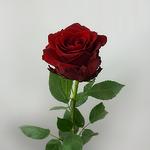 Single long-stemmed red rose without green