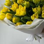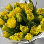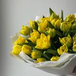 Un bouquet de tulipes jaunes à fleurs doubles — une élégance subtile et de la joie dans chaque fleur. Ces boutons pleins et luxuriants ont une allure particulièrement spectaculaire et apportent une touche de luxe à chaque occasion. Sur demande, il est possible de choisir n'importe quelle couleur — il suffit d'indiquer la couleur préférée lors de la commande.