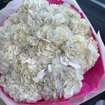 Admirez ce magnifique bouquet d'hortensias blancs ! On dirait de la barbe à papa ou un gros nuage. Ce bouquet monofloral est le cadeau idéal pour toutes les occasions, et particulièrement pour l'anniversaire d'une fille, quel que soit son âge. Les hortensias sont magnifiques quelle que soit la quantité, car leurs inflorescences sont luxuriantes et spectaculaires. Ajoutez-le à vos favoris pour ne pas le manquer ! CONSEILS D'ENTRETIEN DES FLEURS Ne retirez pas le papier d'emballage du bouquet pour que les fleurs durent plus longtemps. Changez l'eau froide du vase tous les jours. Nettoyez régulièrement le vase. Recoupez les tiges de chaque fleur tous les deux jours. Éloignez le bouquet du soleil direct, des courants d'air et des sources de chaleur. Ajoutez de la nourriture pour fleurs 2 à 3 jours après l'achat de votre bouquet (nous en ajoutons systématiquement).