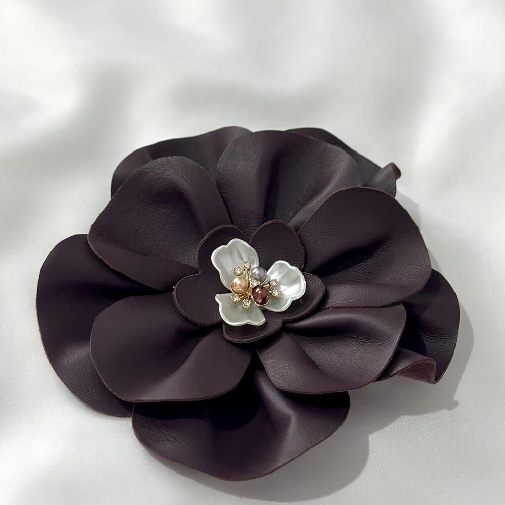 Цветок Брошь - натуральная кожа с жемчужным декором