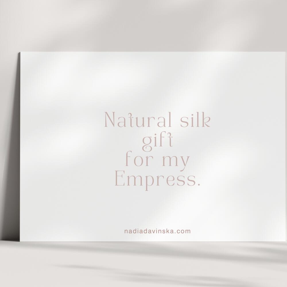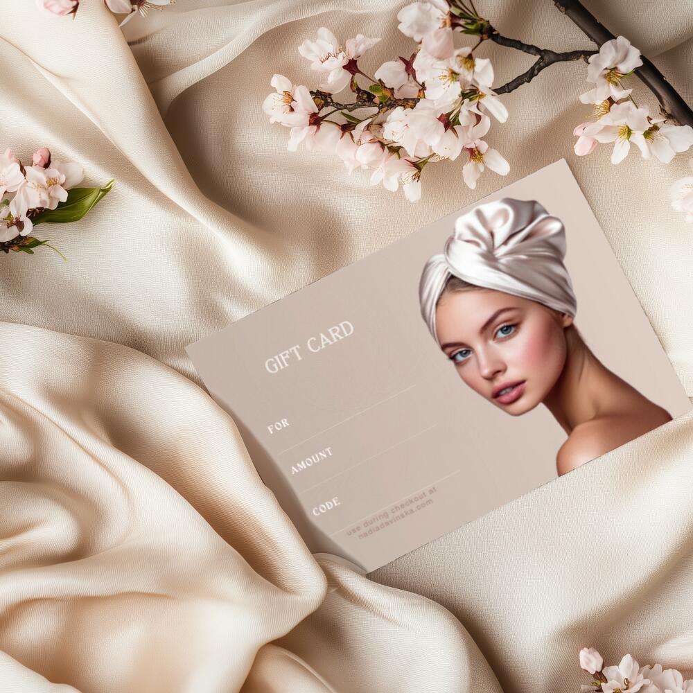 A gift she never received before ✨ Gift card packed in an elegant light blue envelope and sealed with wax stamp. Nadia Davinska turban is a luxurious bound-to-charm gift that will bring you many happy moments of self care rituals. While being a stylish hair accessory, Nadia Davinska turban is, first of all, a comfortable and HEALTHY solution for hair drying. Its two main functions: 1) dry your hair with care and comfort. 2) improve your hair quality. Our mission is to win back those precious minutes of your life usually spent fighting your soaking hair. Focus on what matters the most while your hair is drying fast, safe, and heals with natural silk.