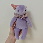 An interior toy. The head is sewn from velour and the upper legs are movable. The eyes are made of beads. Suitable for children ages 6 and up.