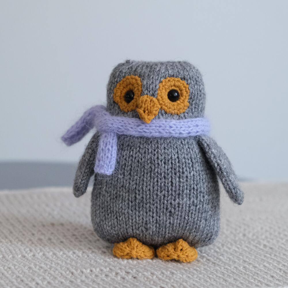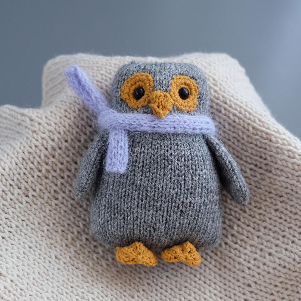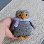 Treat yourself and your loved ones to a special gift. This cute owl in a cozy scarf is made for warm hugs and good mood! Its sweet face, funny little feet, and charming scarf make the owl not only a great friend but also a lovely decoration for your home. Each toy is handmade with love and attention to detail. Only safe and hypoallergenic materials, as well as high-quality wool blend yarn, are used in making the toy to ensure the owl is soft, safe, and will bring you joy for a long time. The scarf can be removed if you like. 📏 Height: 13 cm 🎨 Colors: gray. Scarf is purple. 🧼 Care: Hand wash in warm soapy water is recommended. ⚠️ Note: The color of the toy may vary slightly due to screen display settings. ___________________ If you have any questions, feel free to message me on Flowwow. Wishing you happy shopping and a wonderful day!