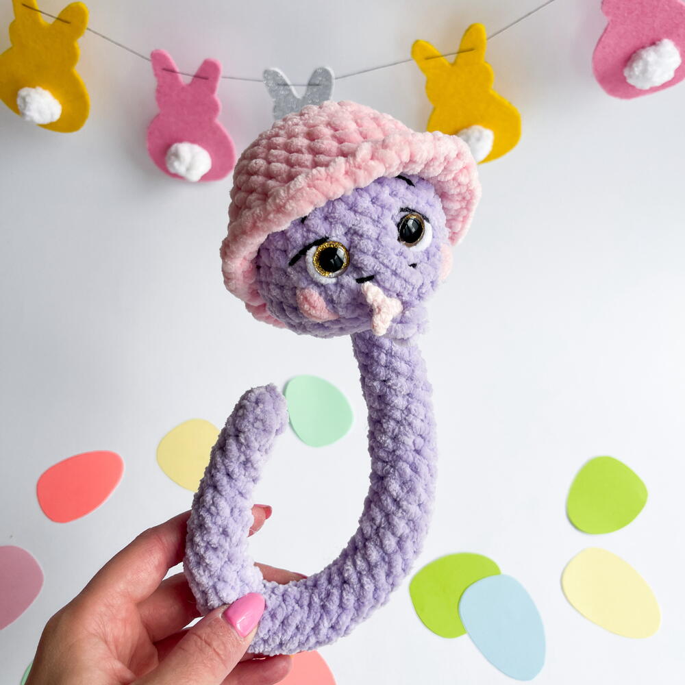 Плюшевая змейка на проволоке | Гибкая вязаная игрушка ручной работы