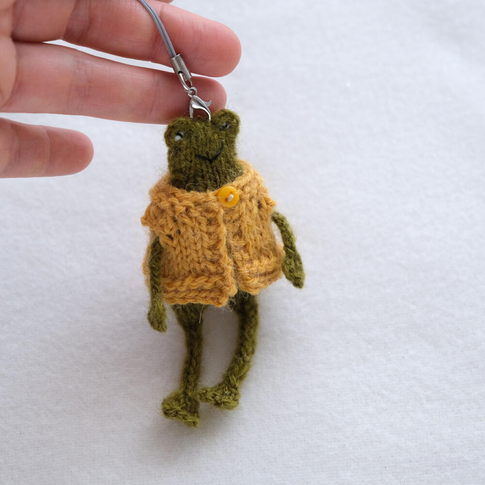 This adorable knitted frog in a sweater is made to bring smiles and warm emotions! It will become a lovely companion for you or your loved ones, delighting with its cute look and cozy outfit. The frog can be used as a keychain, a decoration for your workspace, or a little pocket friend to lift your spirits. Each frog is handmade with love and attention to detail. High-quality wool blend yarn is used, making the toy soft, pleasant to the touch, and a long-lasting source of joy. 📏 Size: 10 cm 🎨 Color: Green, sweater – yellow 🧼 Care: Hand wash in warm soapy water is recommended ⚠ Note: The color may slightly vary due to screen settings. If you have any questions, feel free to message me on Flowwow. Wishing you a pleasant shopping experience and a wonderful day! Best regards, Oksana