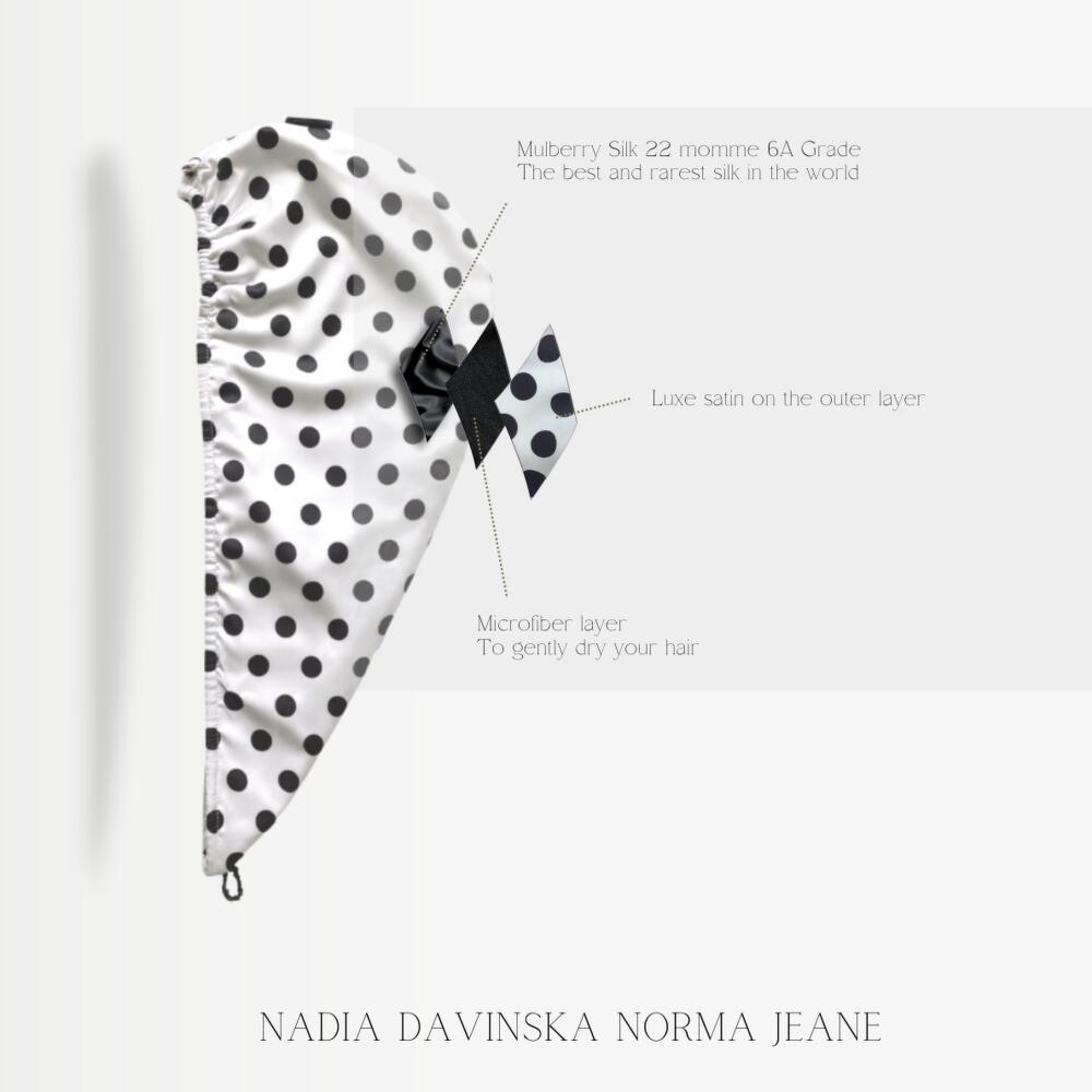 Norma Jeane - Hair-drying turban with mulberry silk and microfiber - A gift she never received before