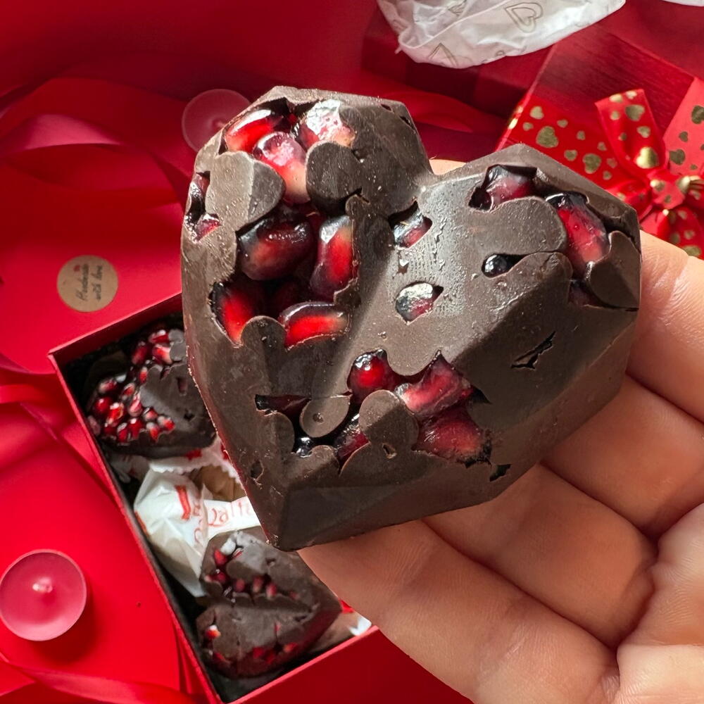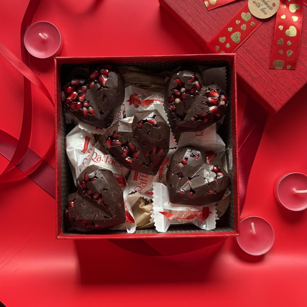 Sweet Valentine’s Day Set ❤️ Delicate Raffaello chocolates paired with chocolate hearts filled with juicy pomegranate ❤️ A perfect balance of sweetness and light tang — a small but meaningful way to say I love you without words.