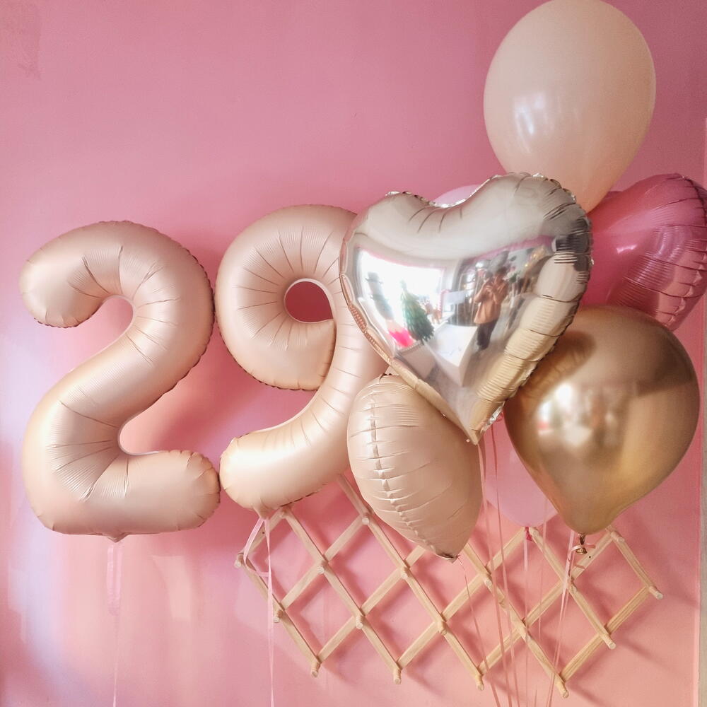 4 latex balloons 3 hearts foil balloons 2 foil numbers