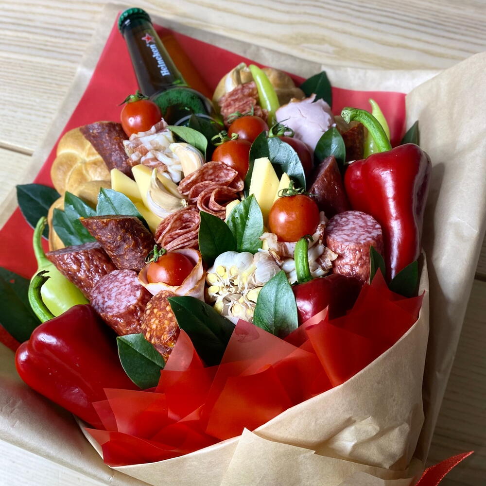 lemon - 1 db. csomagolópapír - 2 db. cheese - 100 g garlic - 2 db. card - 1 db. cherry tomatoes - 100 g ham - 50 g chilli - 3 db. buns - 4 db. celofan - 1 db. sremska kobasica - 200 g heineken beer - 1 db. peppers - 2 db. budimska kobasica - 50 g chaina kobasica - 200 db. bacon - 50 g