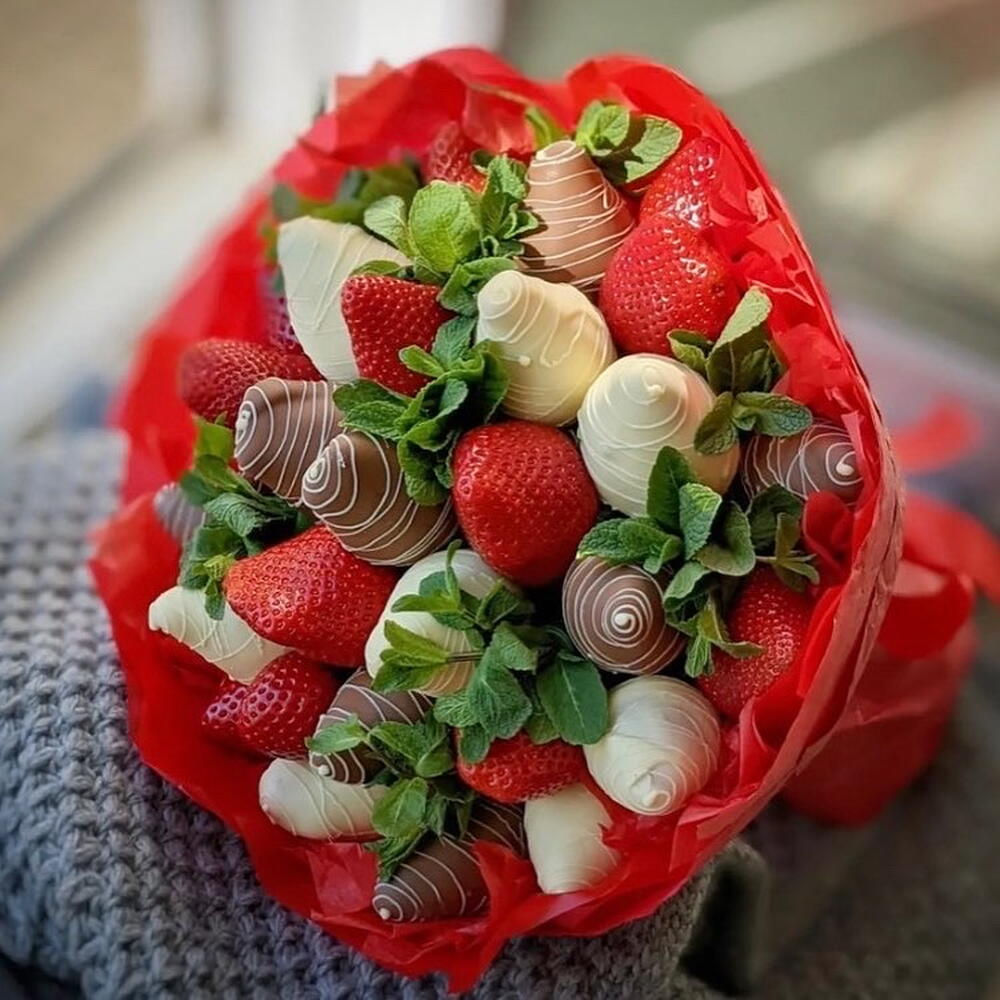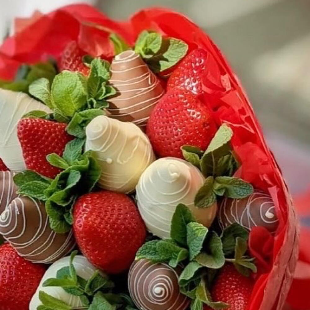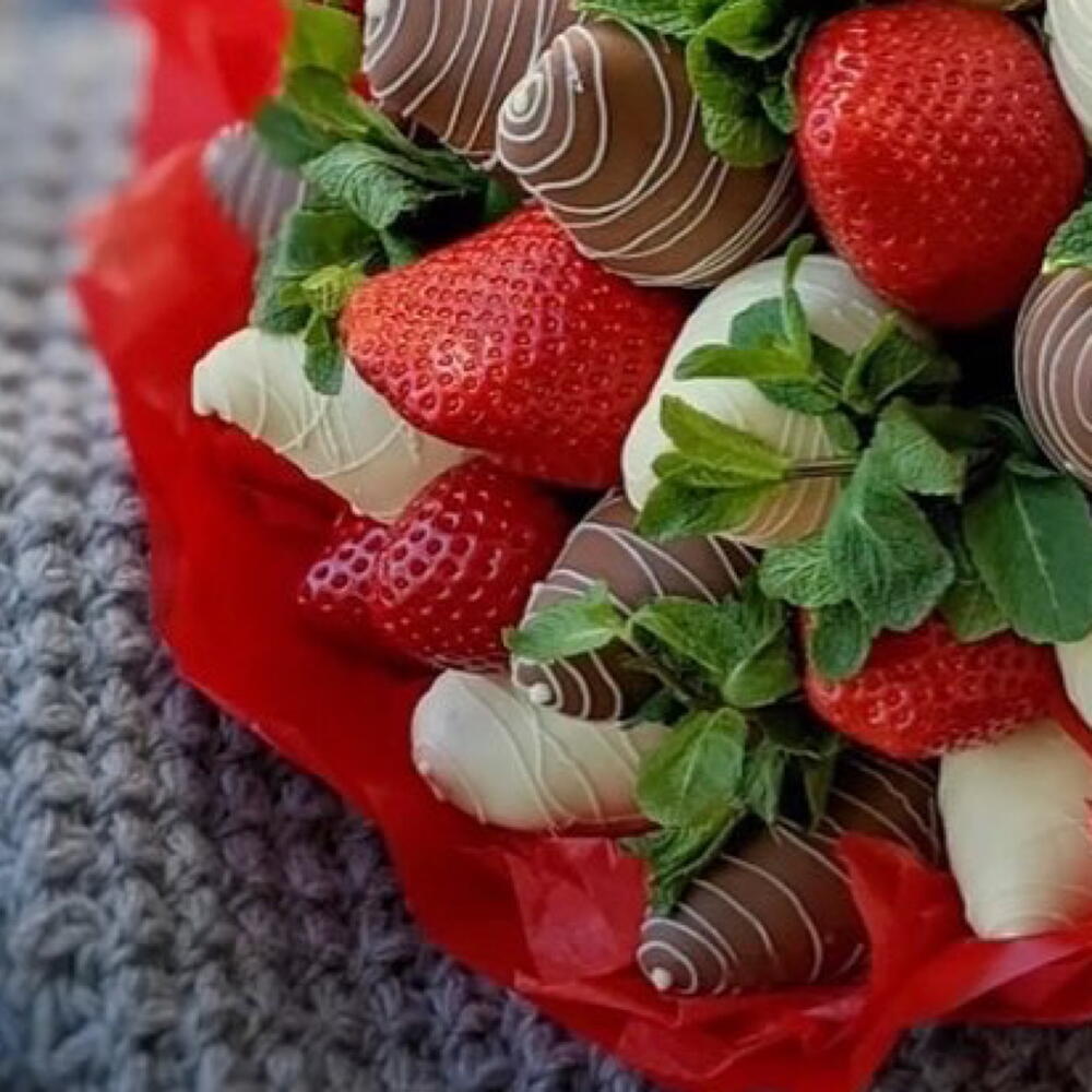 eper - 300 g mint leaves - 50 g strawberry in chocolate - 300 g
