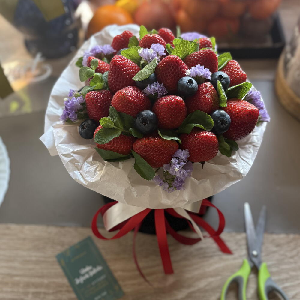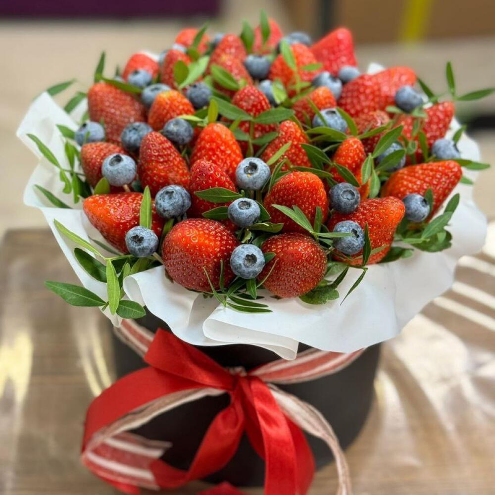 Doboz - 1 g Pistácia - 1 db. eper - 500 g áfonya - 100 g card - 1 g