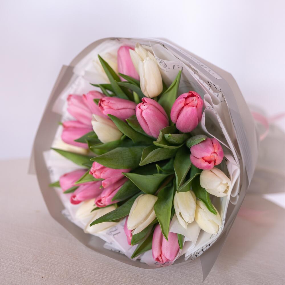 At the photo a bouquet of 25 pcs(s) of Tulip pink is presented. The bouquet consists of 25 pcs(s) of Tulip pink. Indulge in the beauty of nature with our flower bouquets, perfect for any occasion. We are deeply passionate about flowers and always prioritize freshness. While minor composition changes may occur, each bouquet is a testament to our love for these blossoms. Experience the magic of our florists and bring a touch of nature's freshness and our unwavering love for flowers to your day. Please do not hesitate to contact us, if any questions.