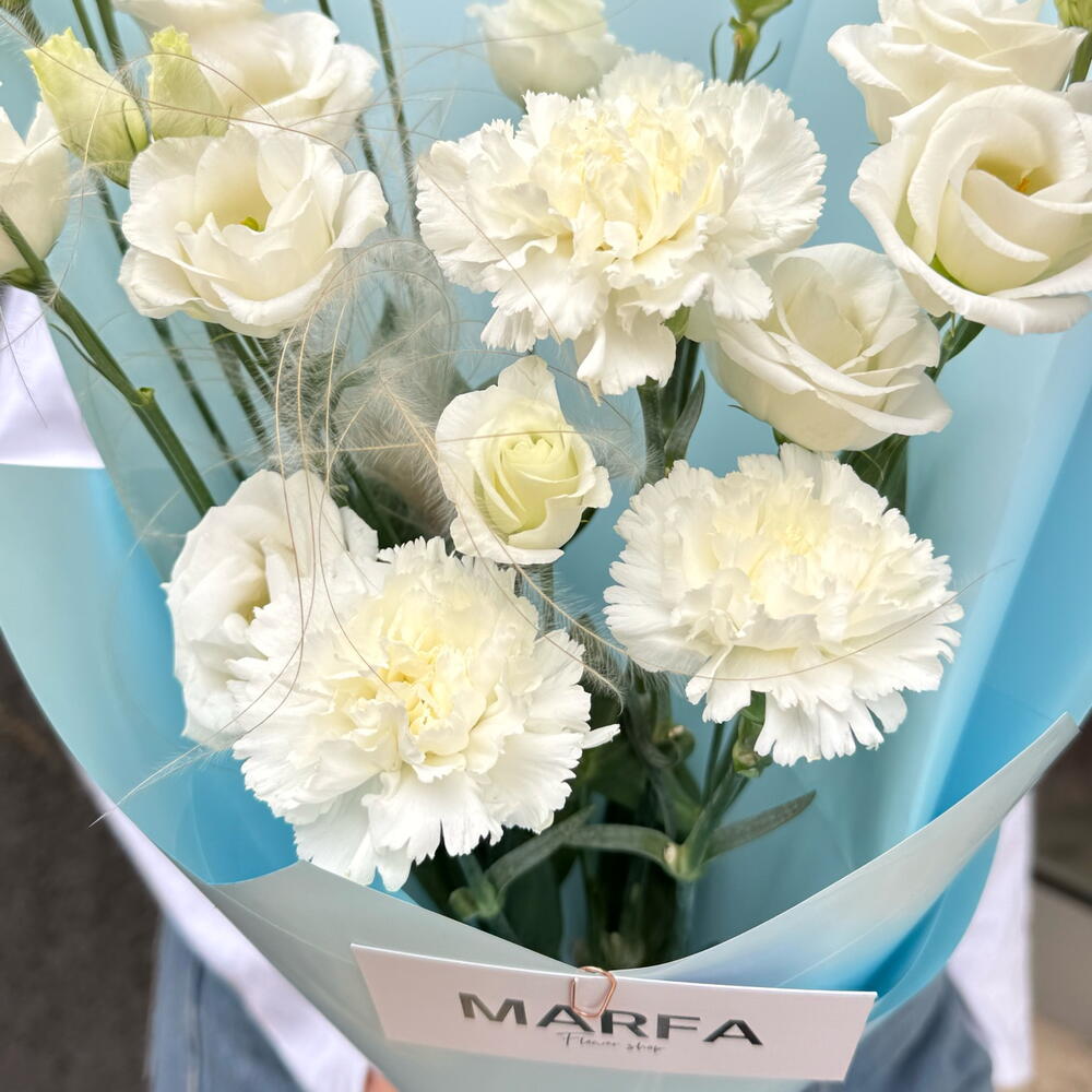 Eustoma - 3 db. szegfű - 5 db. stiffa - 1 db.