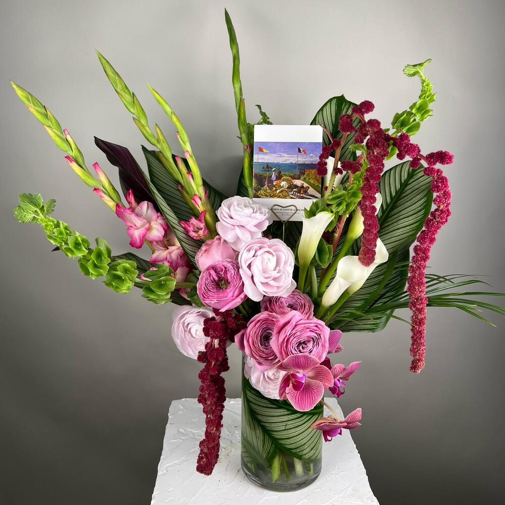Tapasztalja meg Virágkötő Különleges Csokrunk buja szépségét, a friss virágok és a buja zöld növényzet szimfóniáját. Ez a kézzel készített kompozíció egy darab gyönyörűen élénk zöld növényt tartalmaz, amely tökéletes hátteret biztosít a benne rejlő számtalan magával ragadó virágnak. A négy darab gyengéd boglárkával és elbűvölő amaranthusszal díszített csokrot öt lenyűgöző kalaliliom és kerti rózsa teszi még életre, finom illatot és színes látványt nyújtva. A három darab feltűnő ír harangvirág és négy darab fenséges kardliliom mellett a kompozíció élénk színeket ígér. A gyönyörű együttes utolsó simítása egy darab felonapsza, amely fokozza a csokor eleganciáját. Ez egy igazi vizuális csemege, szeretettel átitatva és a frissesség ígéretével, egyenesen virágkötőnk szívéből, az Ön örömére.