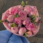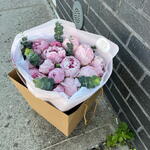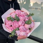 Peonies may be smaller or bigger depending of the season. The photo just rolls the ratio of colors between each other and the design of the arrangement The magical combination of pink peonies and eucalyptus will conquer any heart. Just look at this stunning combo of stunning large peonies and eucalyptus, which we simply and neatly emphasized with wrapping paper and colored ribbon. Add to favorite to not lose! HOW TO CARE OF FLOWERS? Do not remove the wrapping paper from the bouquet, so then flowers will live longer Change the cold water in a vase every day Keep the vase clean Cut the stem of each flower every two days Keep the bouquet out of a direct sun, drafts and heaters Add the flower food 2-3 days after you’ve bought your bouquet (We add the flower food to every bouquet)