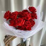 Лента - 2 db. Роза красная - 15 db. Csomagolás - 2 db.