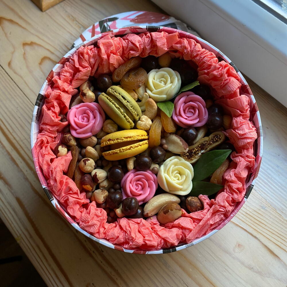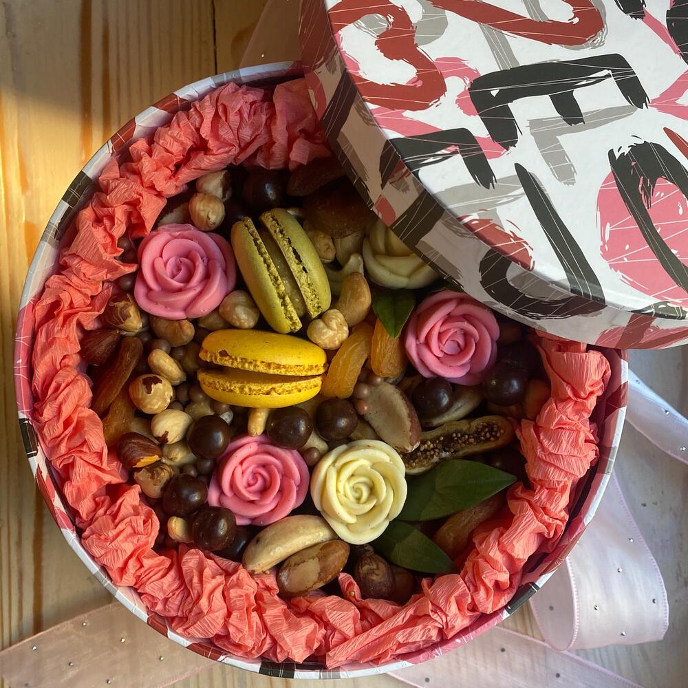 Sweet Gift Box — A Heartfelt Gift for Birthdays, Friends Loved Ones Far Away 🎁💌 Send a little box of happiness! Our Sweet Gift Box is a perfect present for birthdays, a thoughtful surprise for friends, or a way to show love to family living far away. Inside, you’ll find a delicious mix of premium chocolate, nuts, and dried fruits, carefully packed in an elegant round box with an exclusive greeting card — ready to melt hearts from the very first glance. 🎂 Perfect for birthdays and celebrations 💝 A sweet surprise for friends and loved ones 🌍 Ideal for sending love across the distance Beautiful. Tasty. Meaningful. Because the sweetest gifts are the ones that say “I’m thinking of you.” 💖
