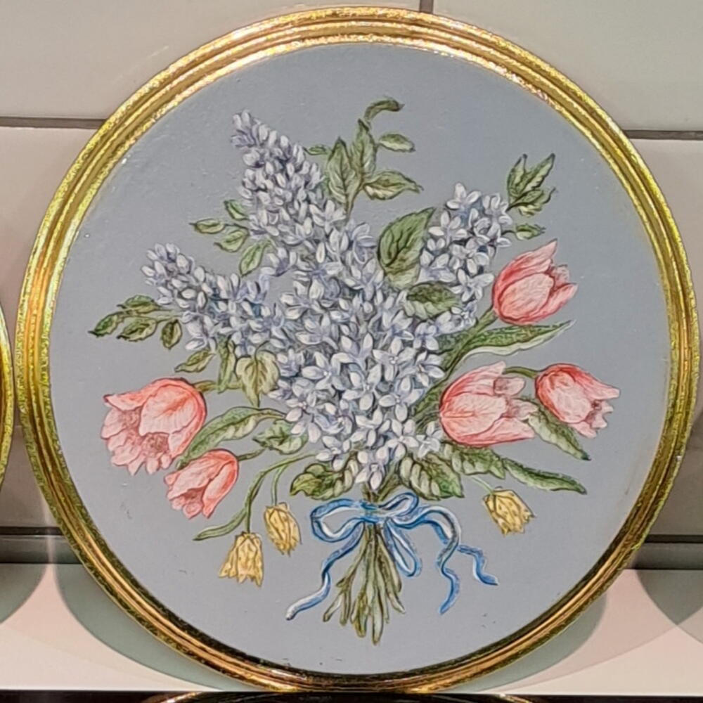 3 miniatures, (20cm, 17.5cm, 14cm) Portraits of flowers. Executed with acrylic