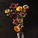 Белый шоколад, молочный шоколад ,куркума, карри, сушёное манго, матча, цукаты имбиря, киноа, кунжут, апельсиновая цедра, эфирное масло мяты
