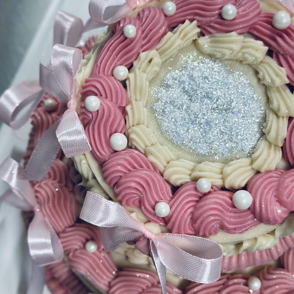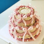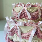 - flour; - eggs; - sugar; - leavening agent; - cottage cheese; - 35% cream; - icing sugar; - cornstarch; - food colouring; - white chocolate;