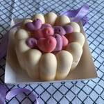 Cioccolato bianco belga, panna, gelatina, pan di Spagna, ripieno di fragole, zucchero, uovo