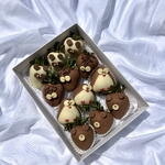Surprise someone special with a box full of sweetness and smiles! This gift set features a dozen fresh strawberries dipped in premium Belgian milk and white chocolate, each hand-decorated as charming animals like pandas, penguins, owls, and bears. Perfect for birthdays, baby showers, anniversaries, or simply to brighten someone’s day. Every strawberry is crafted with care and love, making it a unique and delicious gift for any occasion.