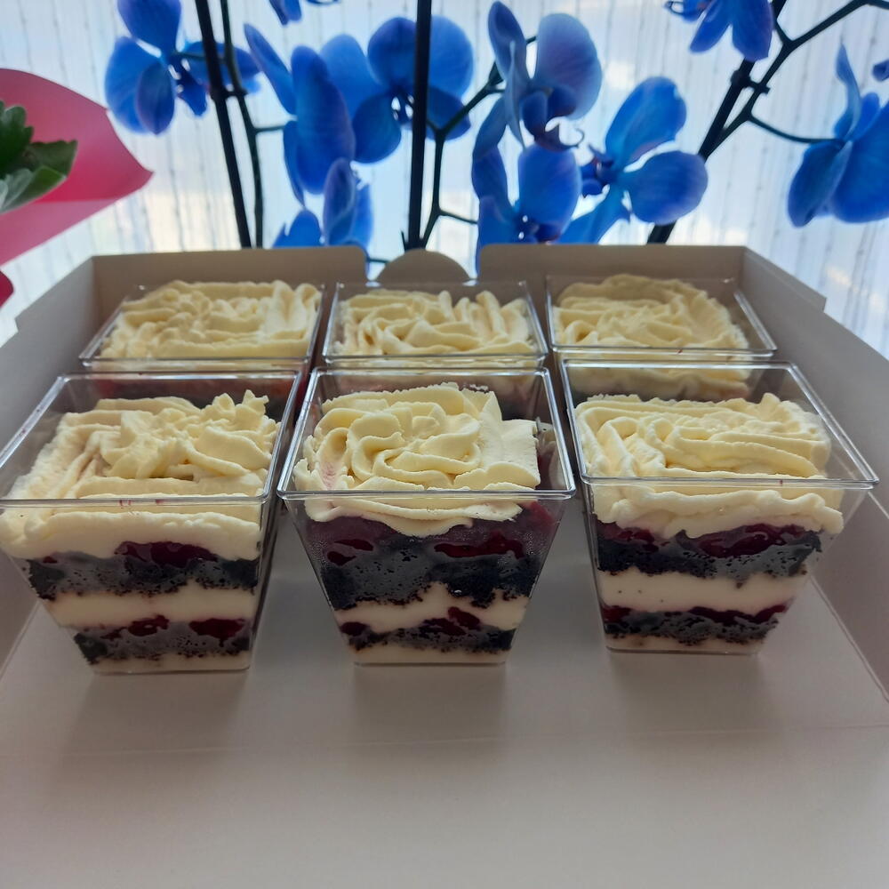 Mascarpone, ciliegie fresche, cacao in polvere, farina, uovo, zucchero, amido di mais, sale