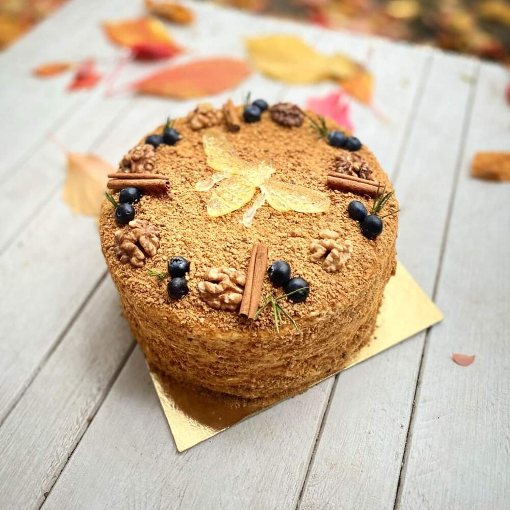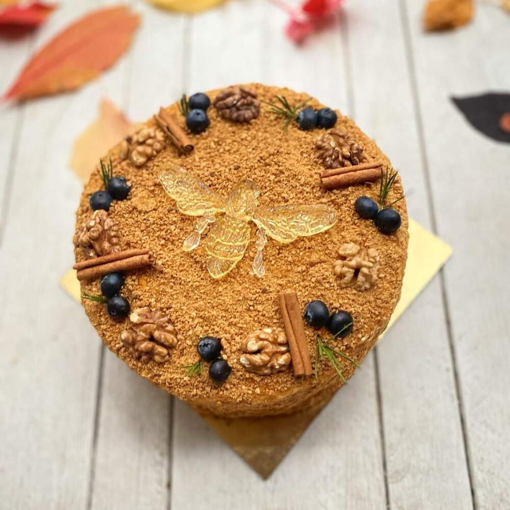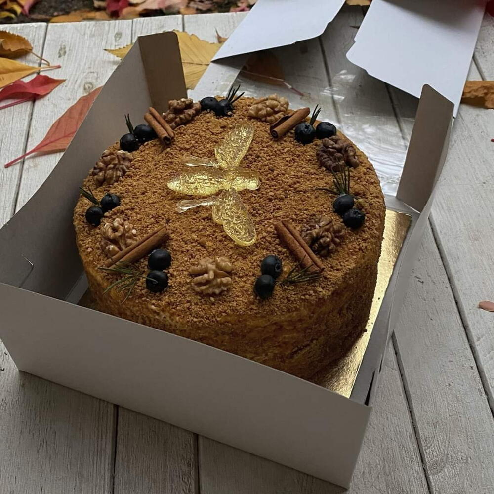 Torta autunnale molto artistica, delicatamente dolce, fatta con ingredienti naturali! Miele della Masuria polacca!