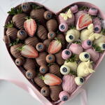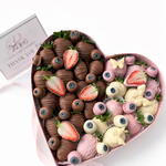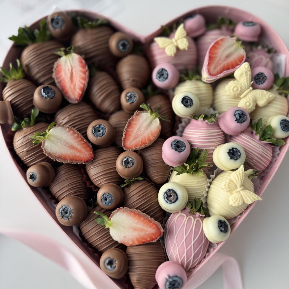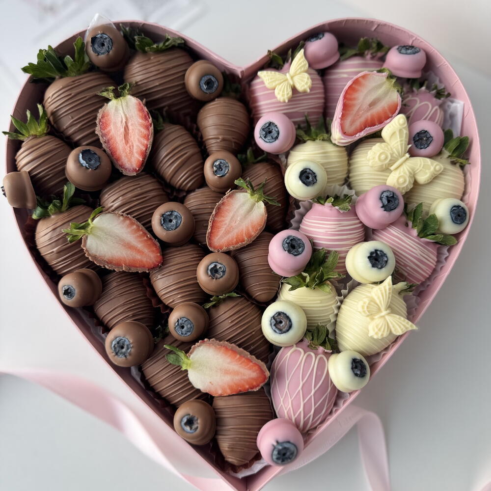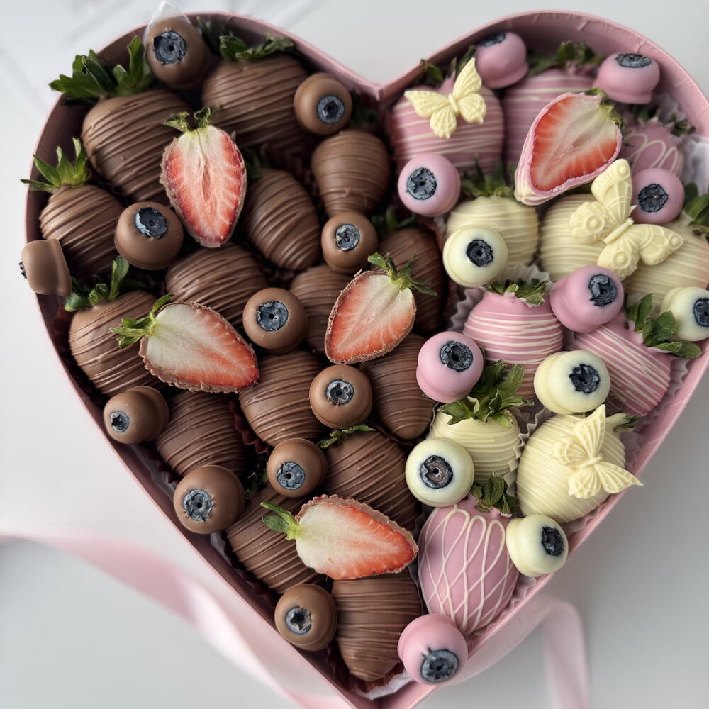 A romantic pink heart-shaped box filled with fresh strawberries hand-dipped in smooth milk and white chocolate. Elegant, sweet, and thoughtfully arranged, this box is the perfect way to express love and care. Ideal for Valentine’s Day, anniversaries, birthdays, or simply to say “I love you.” Custom message card included.