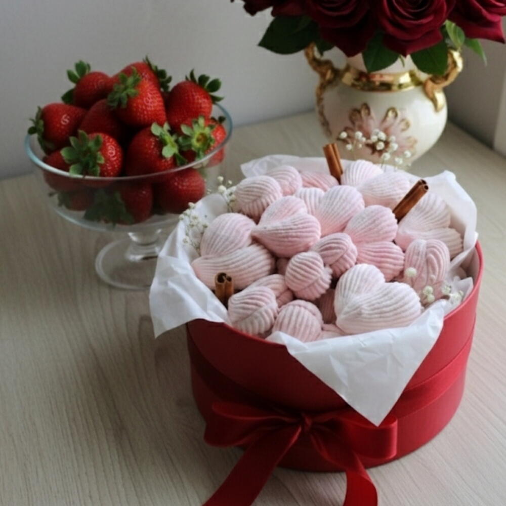 Standart Box – 550 g maigs roku darbs zefīrs sirds formā. Elegants un gaumīgs dāvanu komplekts, gatavs uzdāvināšanai. Ideāli kā mazākais pārsteigums vai papildus dāvana Valentīna dienai. ⏰ Pasūtīt vismaz 4 dienas iepriekš, lai dāvana būtu perfekta. 💡 Ātrie pasūtījumi iespējami pēc pieprasījuma — lūdzu sazinieties ar mums.