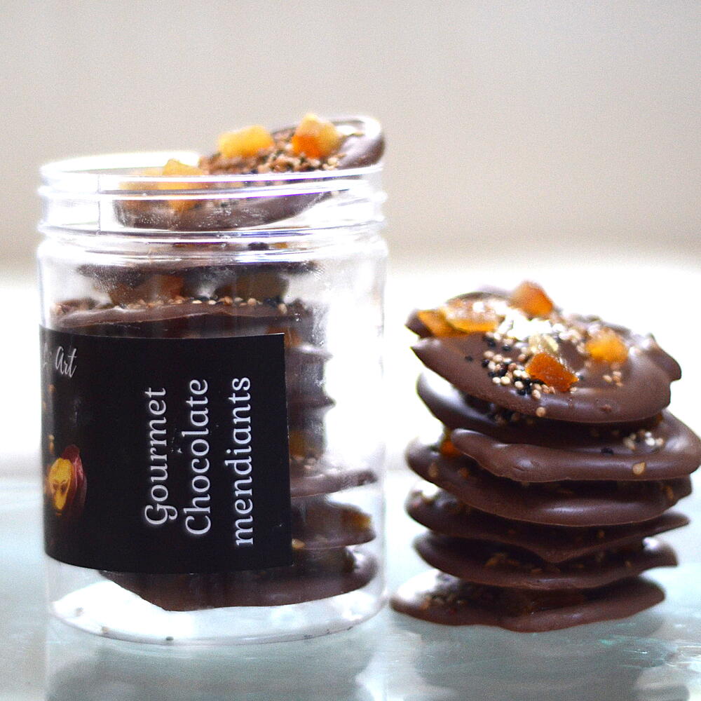 Нежные медианты из премиального молочного бельгийского шоколада, украшенные двумя видами хрустящего киноа, золотистым кунжутом и кусочками натуральной апельсиновой цедры. Каждый медиант создаётся вручную, поэтому вкус получается живым, тёплым и необычно многослойным. Вкус и текстура - сливочный молочный шоколад - нежный хруст киноа - тёплая ореховая нота кунжута - яркая цитрусовая искра апельсина Получается гармоничное, солнечное сочетание, которое идеально подходит и для чая, и для кофе, и как маленький сладкий подарок.