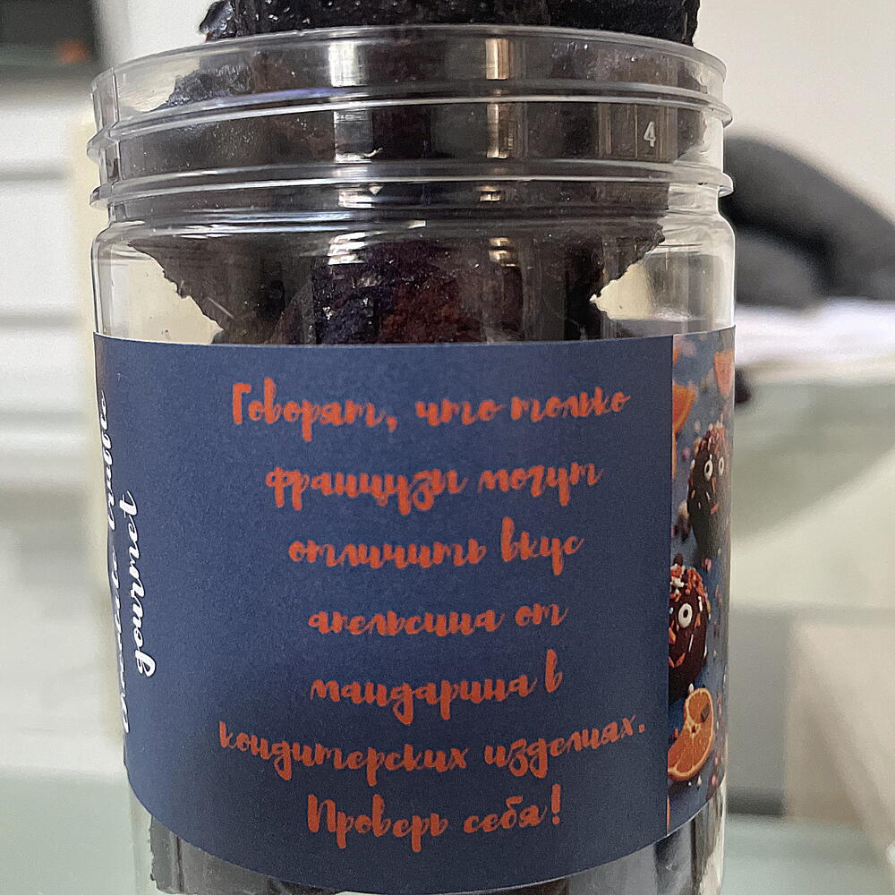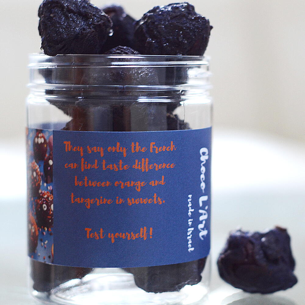 They look the same, but each has its own taste. There are two types of truffles in the jar: half with orange ganache, half with tangerine. Both are made on the basis of velvety white chocolate, freshly squeezed orange and tangerine juice and zest, topped with a thin shell of dark chocolate for a perfect balance of taste. It is said that only real gourmets can distinguish an orange from a tangerine in confectionery. Check yourself - can you find out which one is which?
