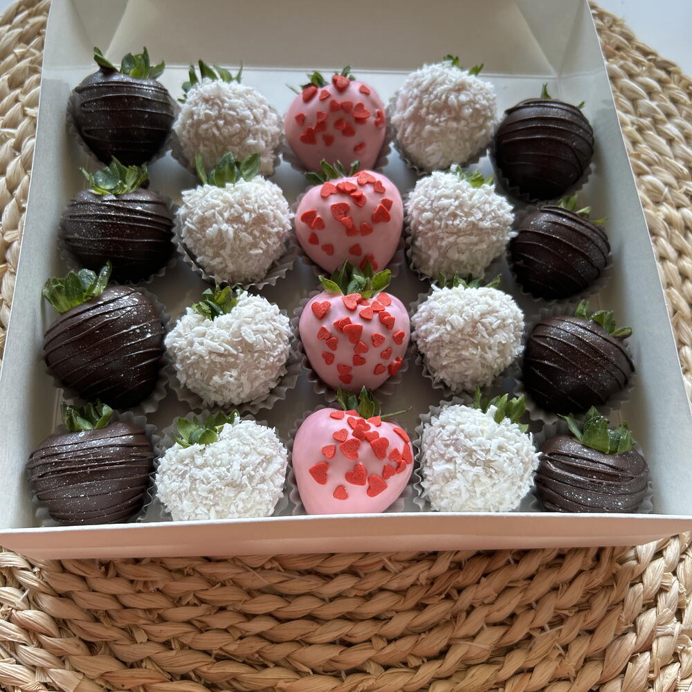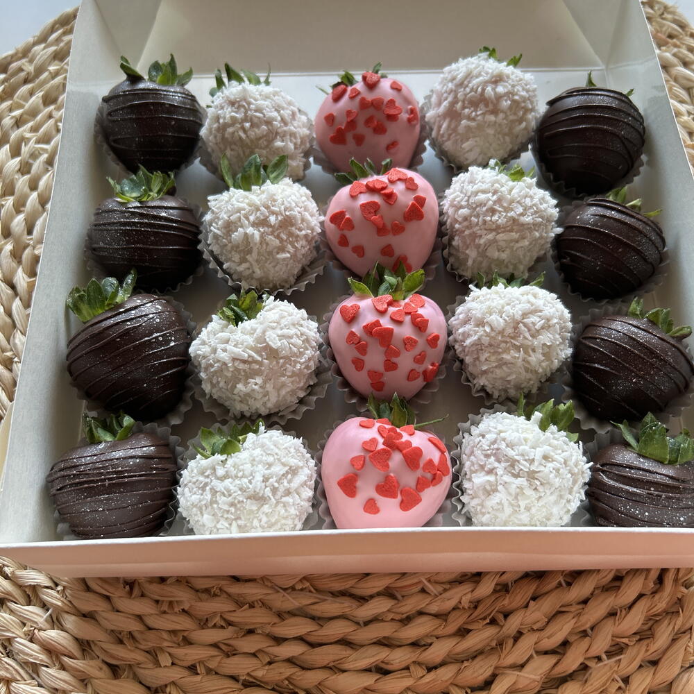 Fragole,cioccolato al latte,cioccolato bianco,fiocchi di cocco
