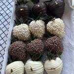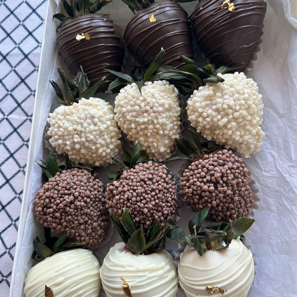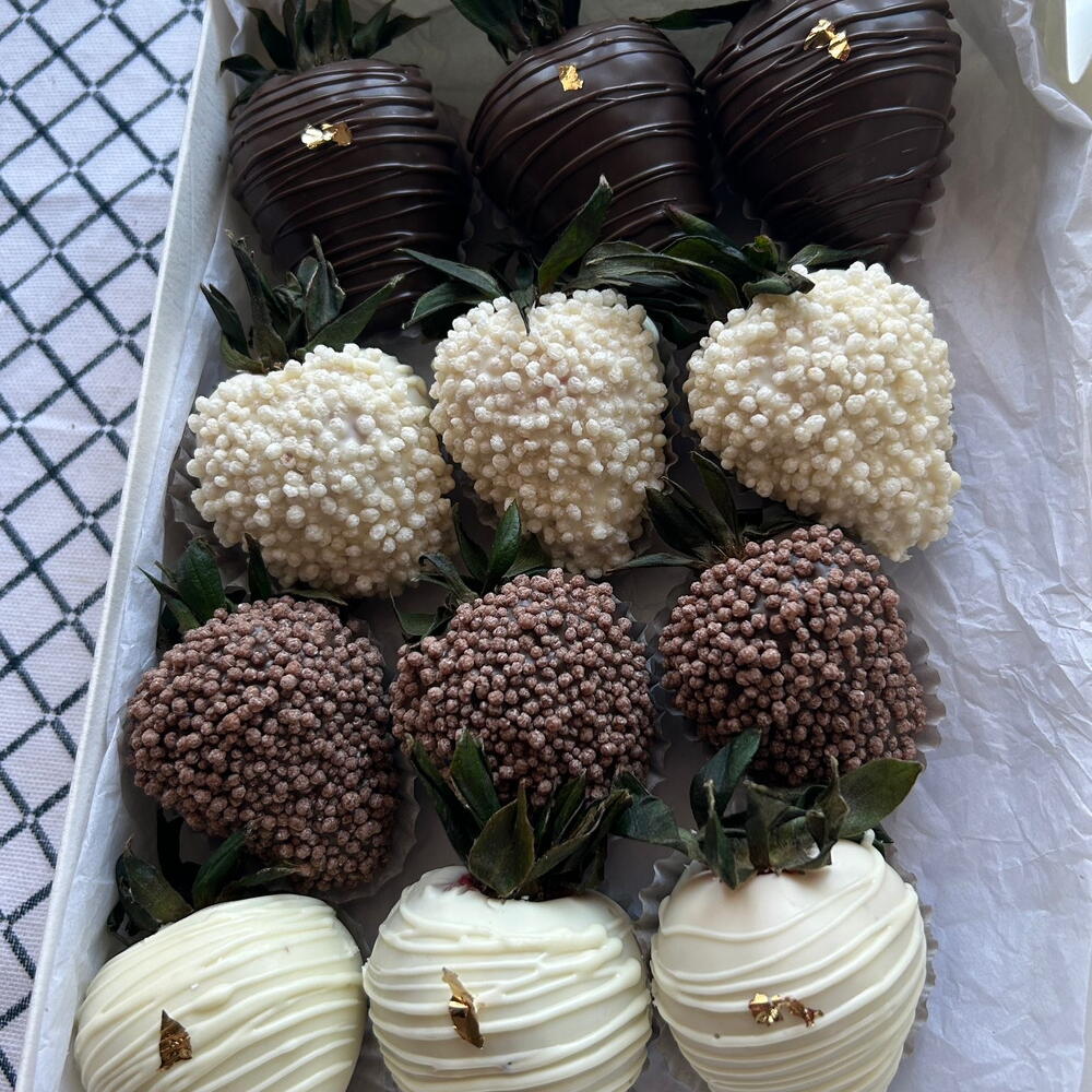 Cioccolato al latte belga, cioccolato bianco belga, fragole fresche,codette