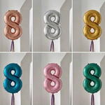 Contenuto del set: 1 x Palloncino in foil: Forma cifra „8” (disponibile in un'ampia gamma di colori) 1 x Nastro: Delicato nastro in tessuto sul fondo del palloncino