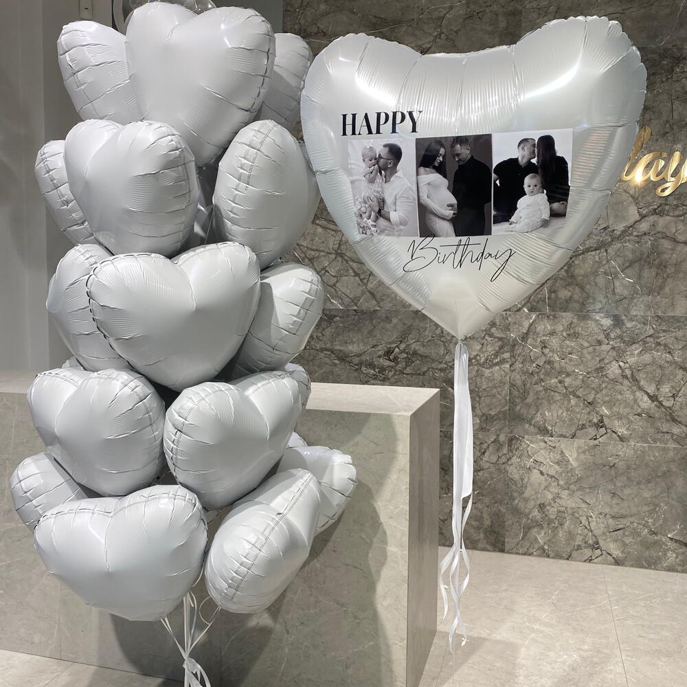 Included in the set: 1 bouquet of 20 hearts 45cm 1 heart 90cm with 3 photos and inscription 2 weights 2 bags for transportation Total number of balloons: 21 Filling: All balloons filled with helium длина, мм: 2000 ширина, мм: 2000 высота, мм: 2000